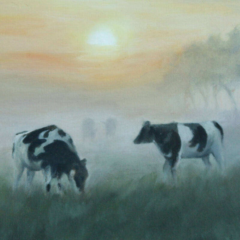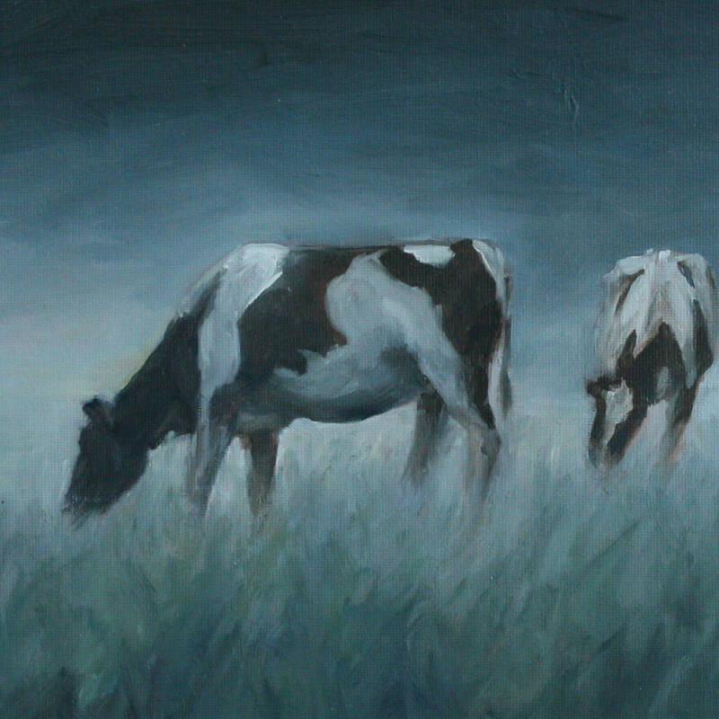 kor i kvällsdimma
